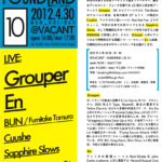 FOUNDLAND、記念すべき10回目となる今回は、アンビエント/ドローン/サイケデリック/シンセポップの境界を行き来するアーティスト達を フィーチャー。幽玄なアンビエント・フォークを奏でるUS発の人気女性アーティストGrouper、12KからリリースされたThe Boatsのアルバムに参加、自身の新作EPもリリース間近のCuushe、アメリカの人気レーベルNot Not Funよりデビューし、今回が日本での初ライブとなるSapphire Slows、そして映像的なギターサウンドを作り出す2人組IKEBANAが登場します。さらに、Grouperと共にアメリカより同時来日する美麗ド ローン・ユニットEn、SonarSound Tokyo2012、ロサンゼルスでのLow end Theoryへの出演も決まったBun/Fumitake Tamuraの参加も決定!幻想的なゆらめきのサウンドスケープをお届けします。