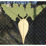 Encountering a big metal radish on a fence, in Berlin.