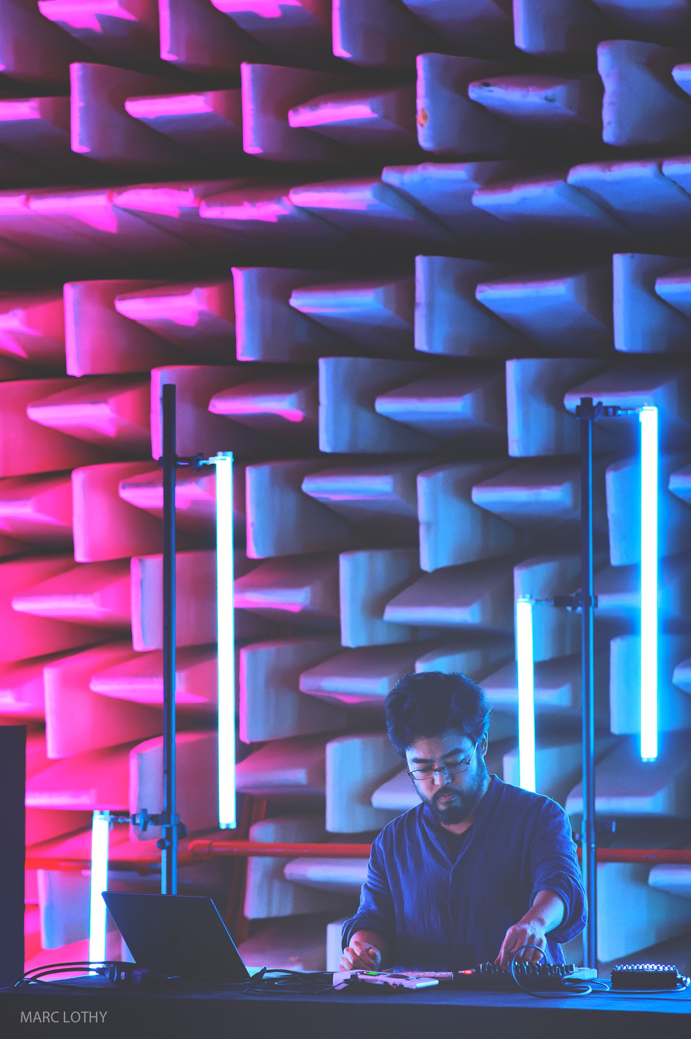 環境音や日常音などを録音・編集し楽曲を構築するサウンド・クリエイター。